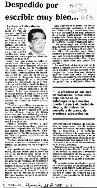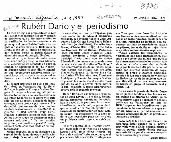 Rubén Darío y el periodismo [artículo] Lautaro Robles.