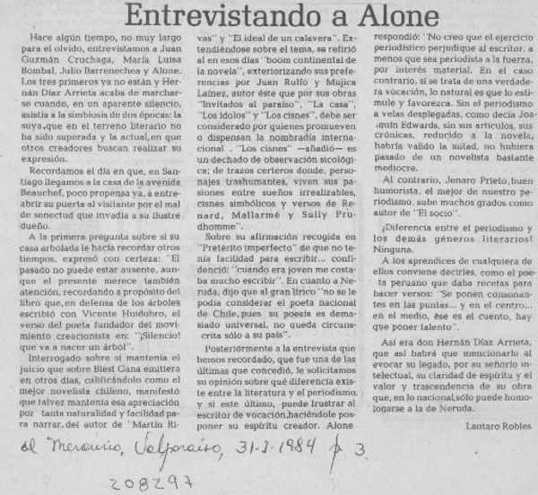 Entrevistando a Alone [artículo] Lautaro Robles.