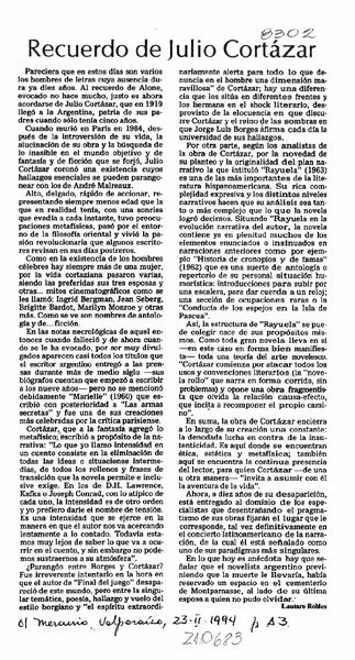 Recuerdo de Julio Cortázar [artículo] Lautaro Robles.