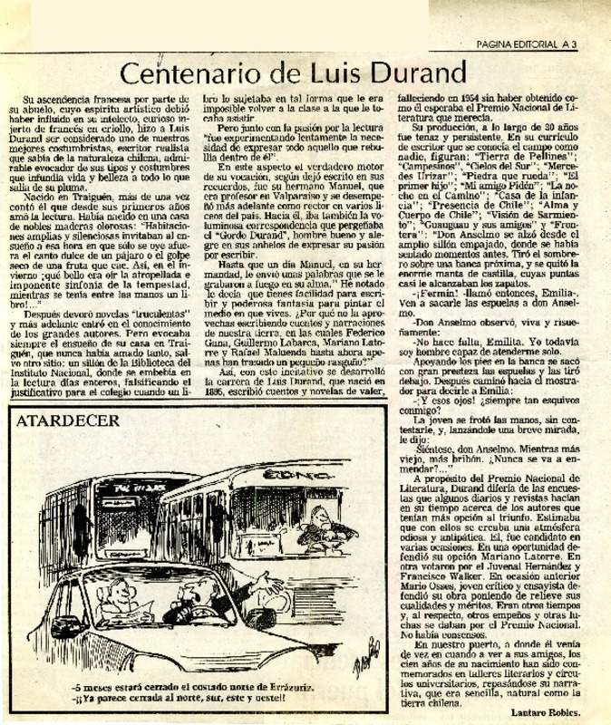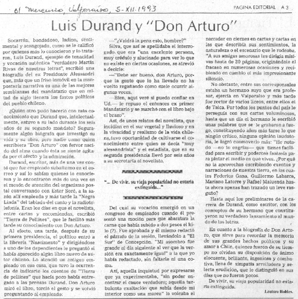 Luis Durand y "Don Arturo" [artículo] Lautaro Robles.