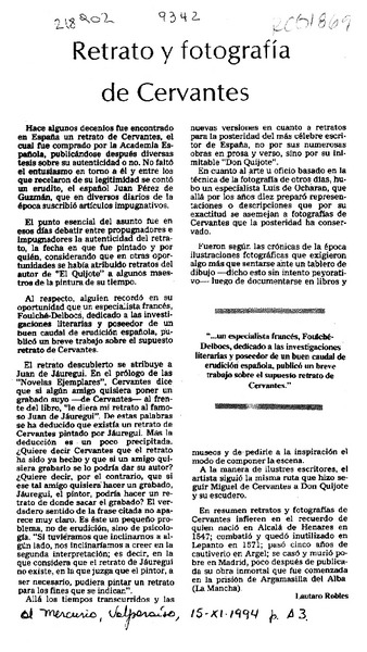 Retrato y fotografía de Cervantes [artículo] Lautaro Robles.
