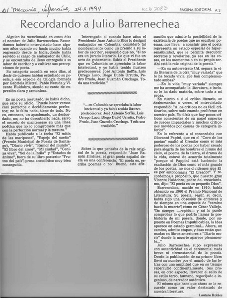 Recordando a Julio Barrenechea [artículo] Lautaro Robles.