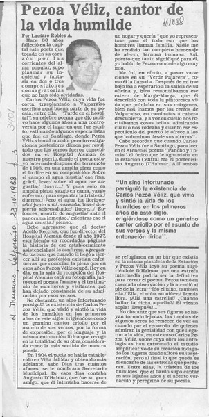 Pezoa Véliz, cantor de la vida humilde [artículo] Lautaro Robles A.