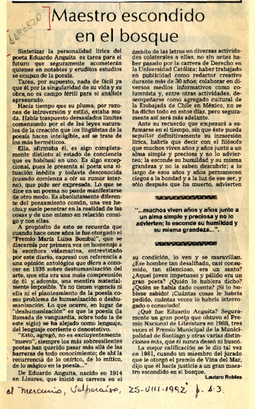 Maestro escondido en el bosque [artículo] Lautaro Robles.