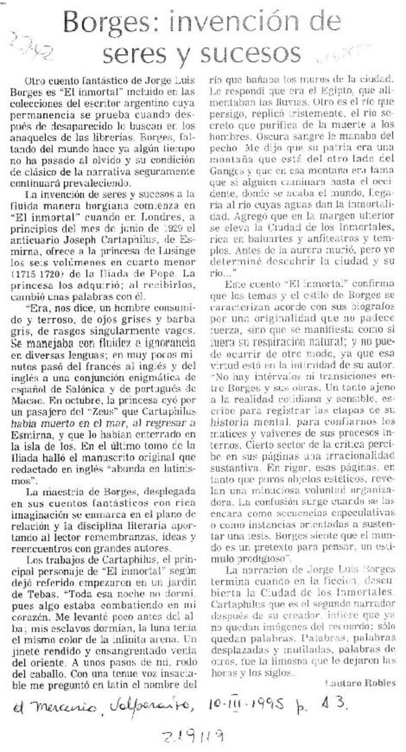 Borges, invención de seres y sucesos [artículo] Lautaro Robles.