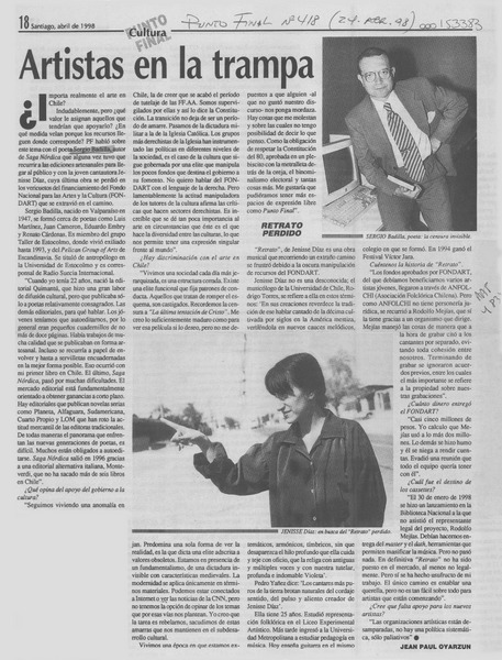 Artistas en la trampa [artículo] Jean Paul Oyarzún.