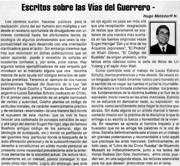 Escritos sobre las vías del guerrero [artículo] Hugo Metzdorff N.