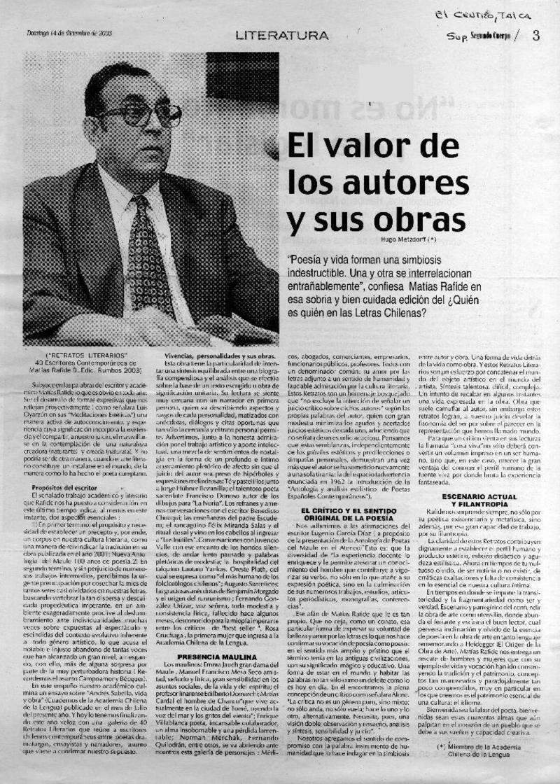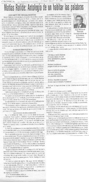 Matías Rafide: Antologia de un habitar las palabras. [artículo] Hugo Metzdorff Navarrete