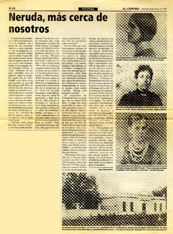 Neruda, más cerca de nosotros [artículo] Hugo Metzdorff N.