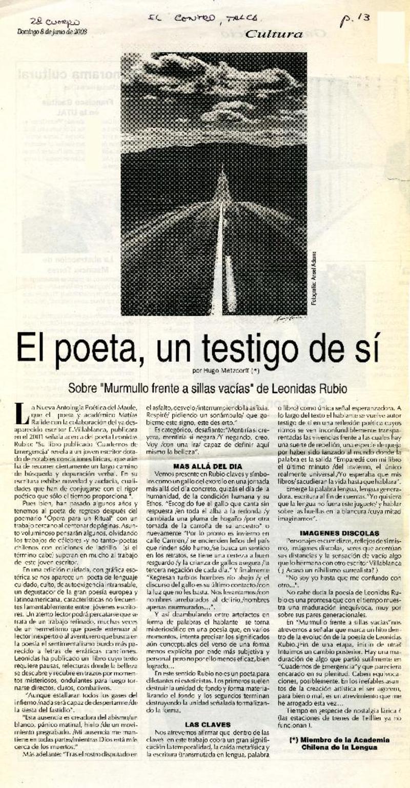 El poeta, un testigo de sí [artículo] Hugo Metzgorff.
