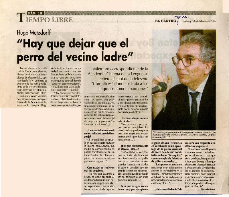 "Hay que dejar el perro del vecino ladre" (entrevista) [artículo] Eduardo Bravo.