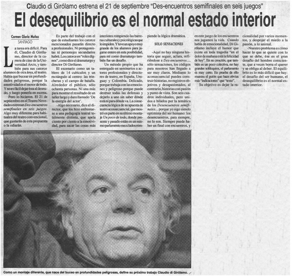 El desequilibro es el normal estado interior [artículo] Carmen Gloria Muñoz.