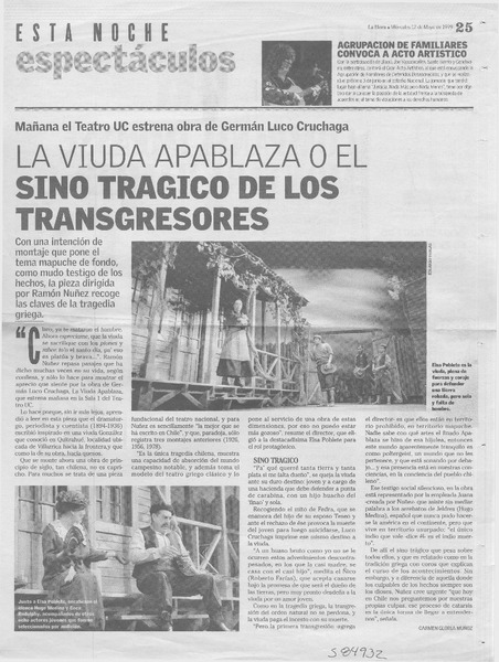 La viuda Apablaza o el sino trágico de los transgresores [artículo] Carmen Gloria Muñoz