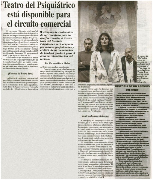 Teatro del psiquiátrico está disponible para el circuito comercial [artículo] Carmen Gloria Muñoz.