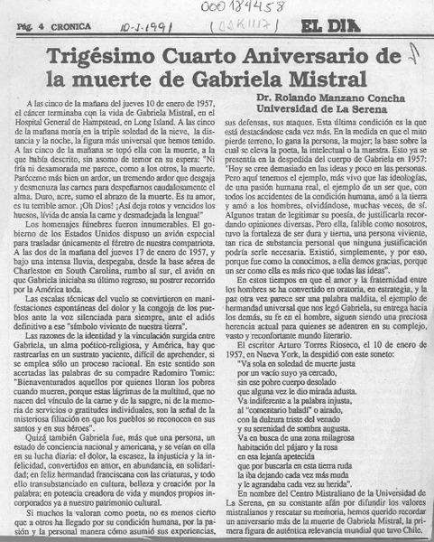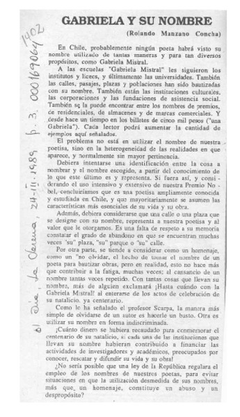 Gabriela y su nombre [artículo] Rolando Manzano Concha.