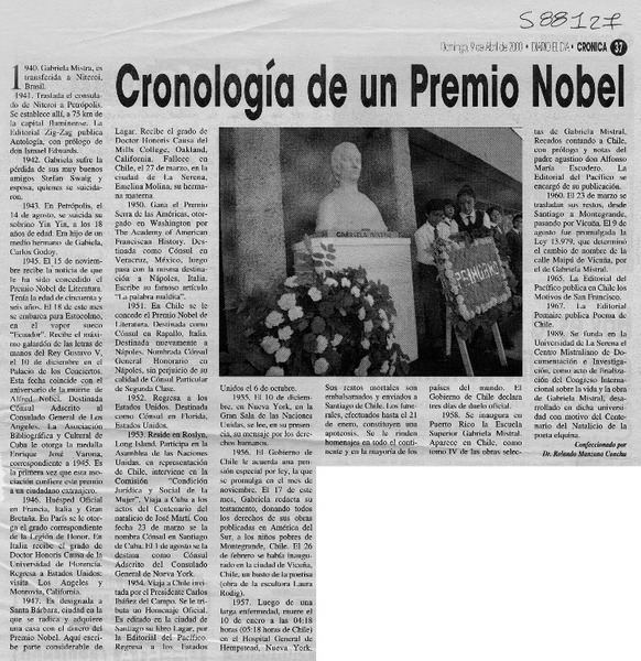 Cronología de un Premio Nobel [artículo] Rolando Manzano Concha