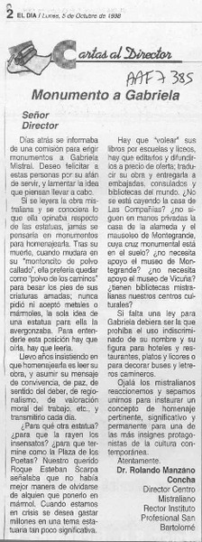 Monumento a Gabriela [artículo] Rolando Manzano Concha.