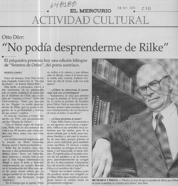 "No podía desprenderme de Rilke" [artículo] Maureen Lennon Z.