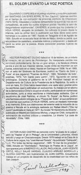 El dolor levantó la voz poética [artículo] Raúl Mellado.