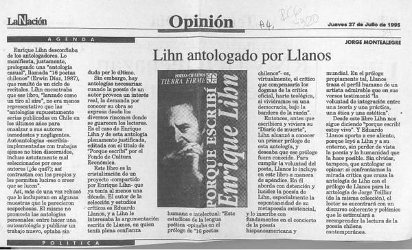 Lihn antologado por Llanos [artículo] Jorge Montealegre.