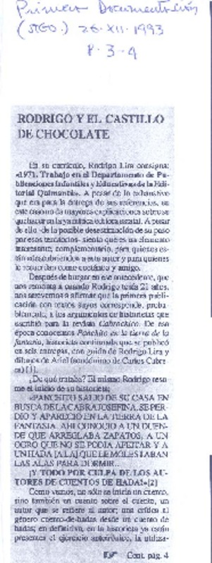 Rodrigo y el castillo de chocolate [artículo] Jorge Montealegre.