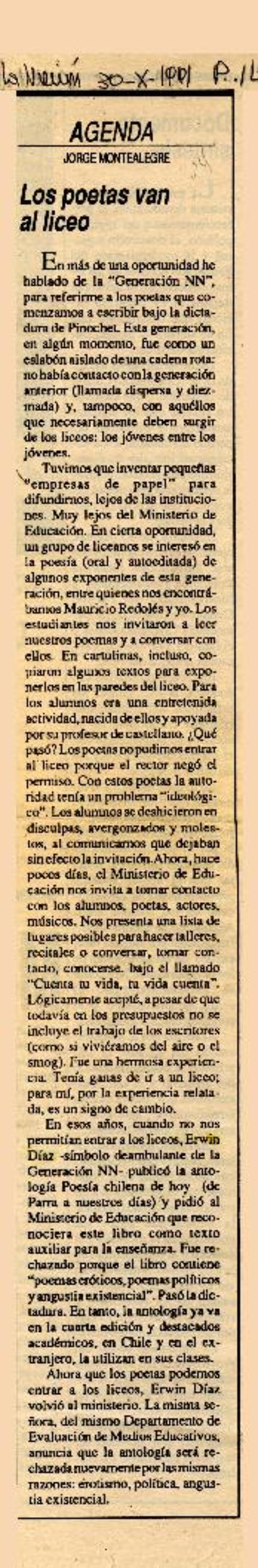 Los poetas van al liceo [artículo] Jorge Montealegre.