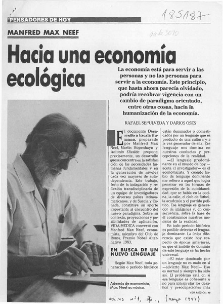 Hacia una economía ecológica [artículo] Darío Oses [y] Rafael Sepúlveda.