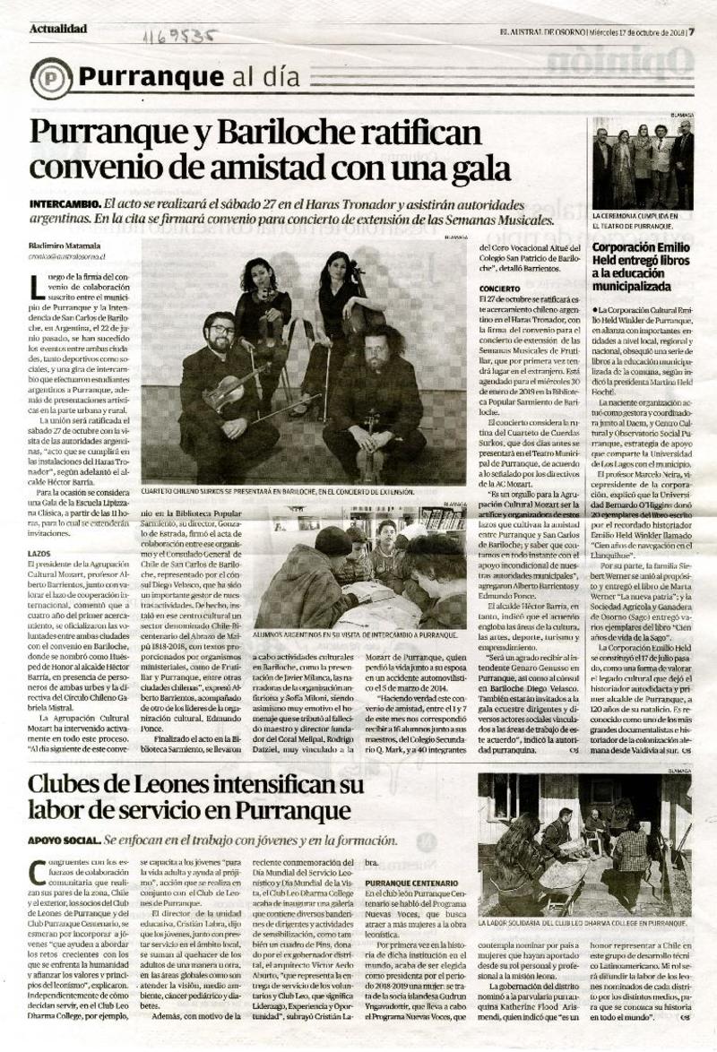 Purranque y Bariloche ratifican convenio de amistad con una Gala [artículo] Bladimiro Matamala.