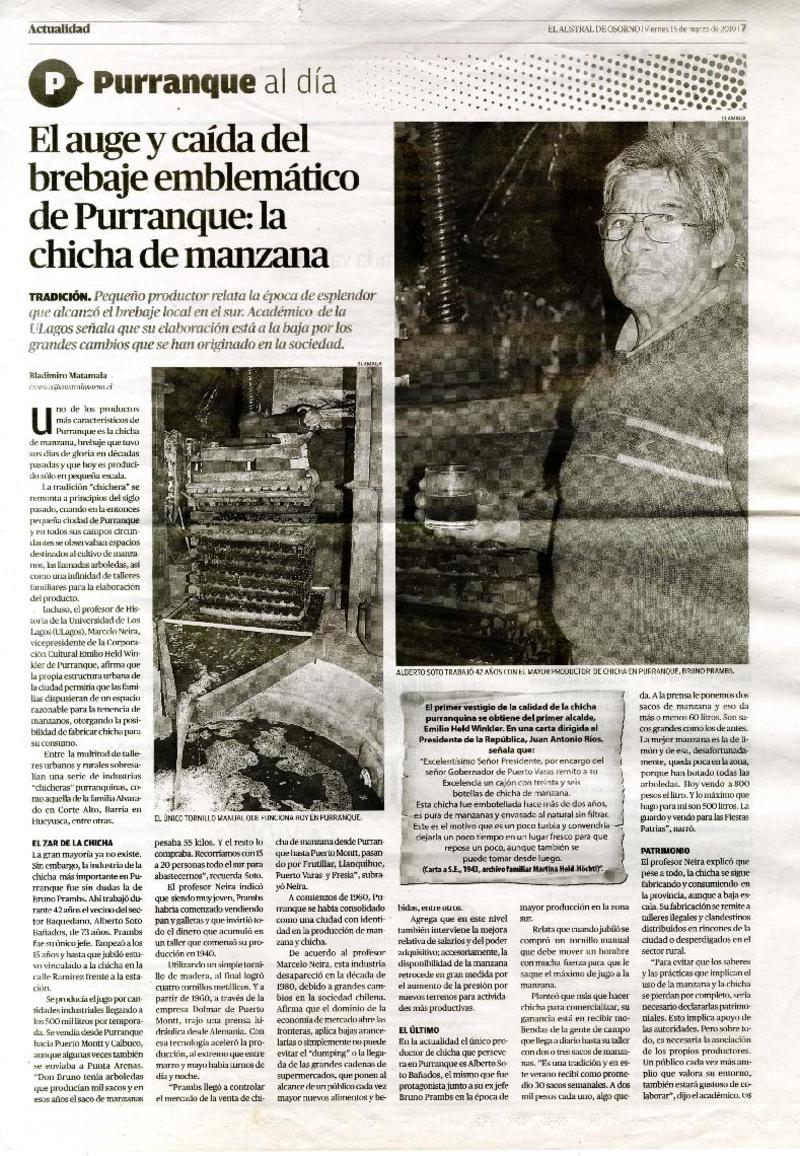 El auge y caída del brebaje emblemático de Purranque la chicha de manzana [artículo] : Bladimiro Matamala.