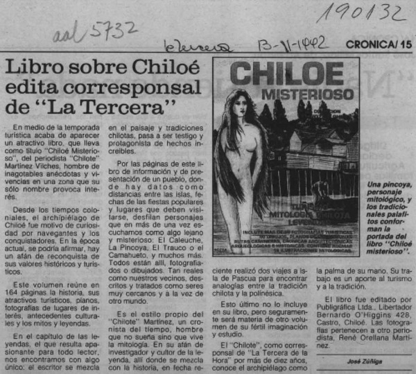 Libro sobre Chiloé edita corresponsal de "La Tercera" [artículo] José Zúñiga.
