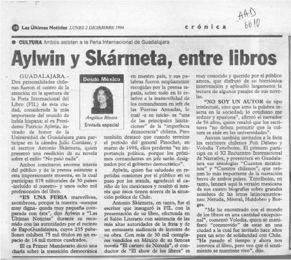 Aylwin y Skármeta, entre libros [artículo] Angélica Rivera.