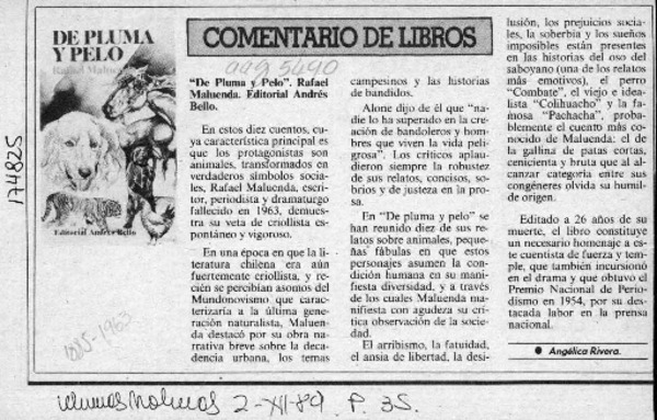 Autores chilenos - Maluenda, Rafael - De pluma y pelo
