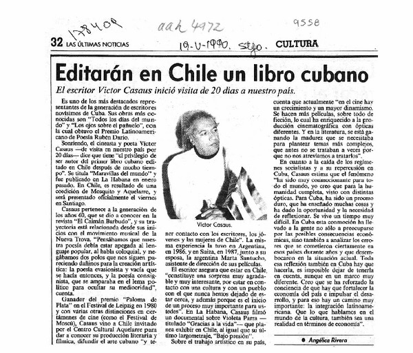 Editarán en Chile un libro cubano [artículo] Angélica Rivera.