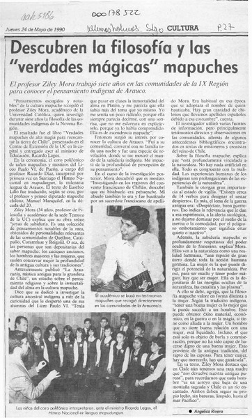Descubren la filosofía y las "verdades mágicas" mapuches [artículo] Angélica Rivera.