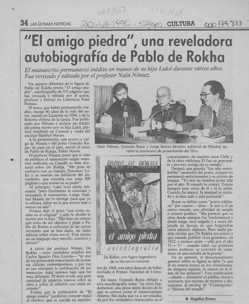 "El amigo piedra", una reveladora autobiografía de Pablo de Rokha [artículo] Angélica Rivera.
