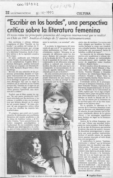 "Escribir en los bordes", una perspectiva crítica sobre la literatura femenina [artículo] Angélica Rivera.