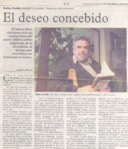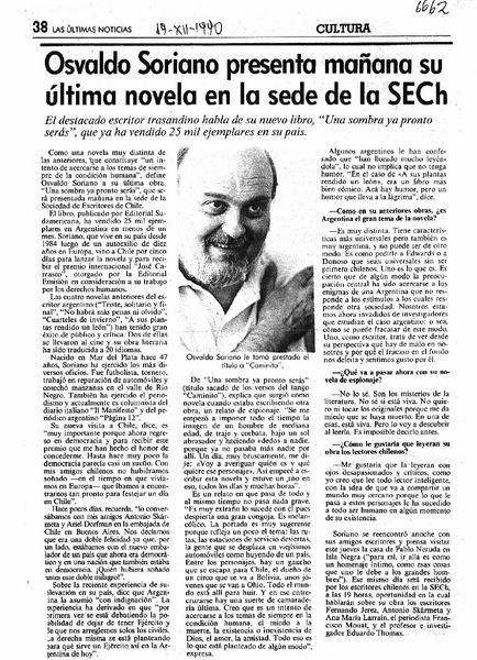 Osvaldo Soriano presenta mañana su última novela en la sede de la SECH [artículo] Angélica Rivera.