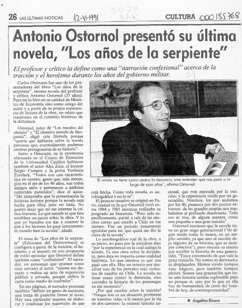 Antonio Ostornol presentó su última novela, "Los años de la serpiente" [artículo] Angélica Rivera.
