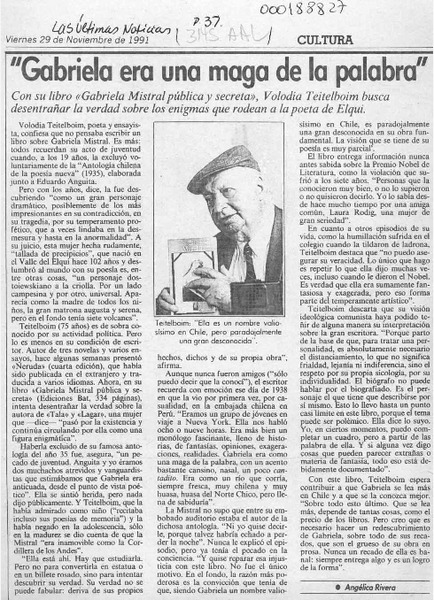 "Gabriela era una maga de la palabra" [artículo] Angélica Rivera.