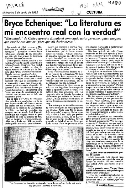 Bryce Echenique, "La literatura es mi encuento real con la verdad" [artículo] Angélica Rivera.