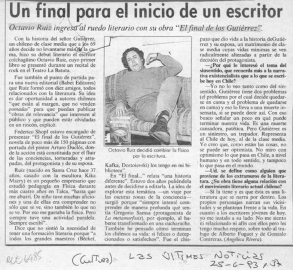 Un final para el inicio de un escritor [artículo] Angélica Rivera.