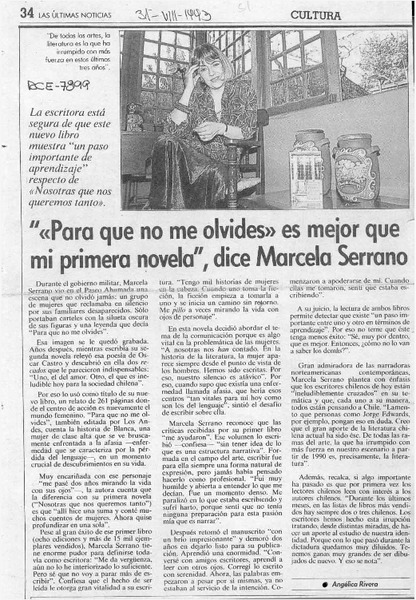 "Para que no me olvides" es mejor que mi primera novela", dice Marcela Serrano [artículo] Angélica Rivera.