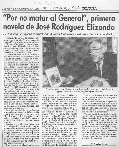 "Por no matar al General", primera novela de José Rodríguez Elizondo [artículo] Angélica Rivera.