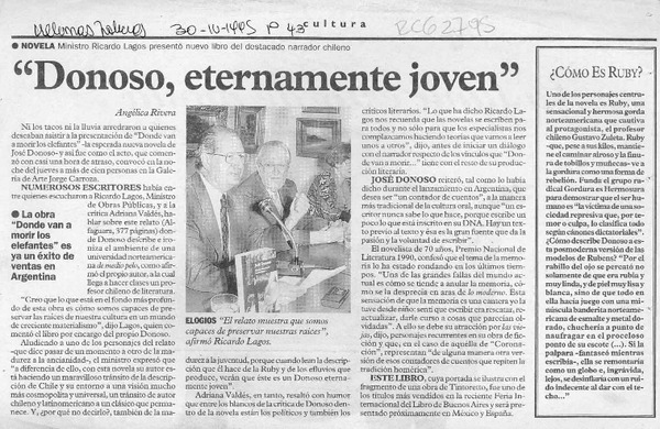 "Donoso, eternamente joven" [artículo] Angélica Rivera.