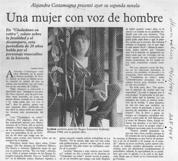 Una mujer con voz de hombre [artículo] Angélica Rivera.