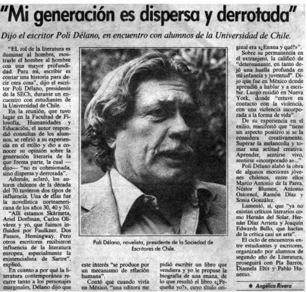 Poli Délano, entre la pluma y la pared [artículo] Angélica Rivera