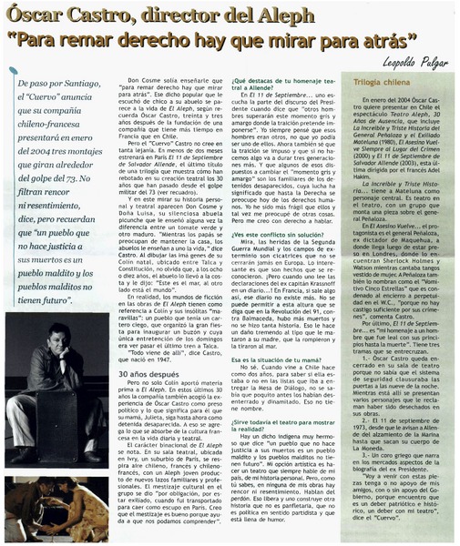 Oscar Castro, director del Aleph "Para remar derecho hay que mirar para atrás" : [entrevistas] [artículo] Leopoldo Pulgar.