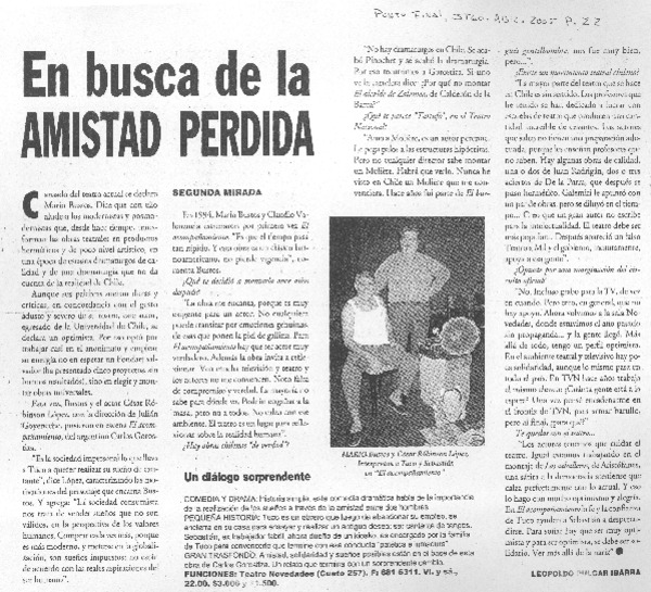 En busca de la amistad perdida [entrevista] [artículo] Leopoldo Pilgar Ibarra.