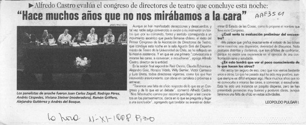 "Hace muchos años que no nos mirábamos a la cara" [artículo] Leopoldo Pulgar I.
