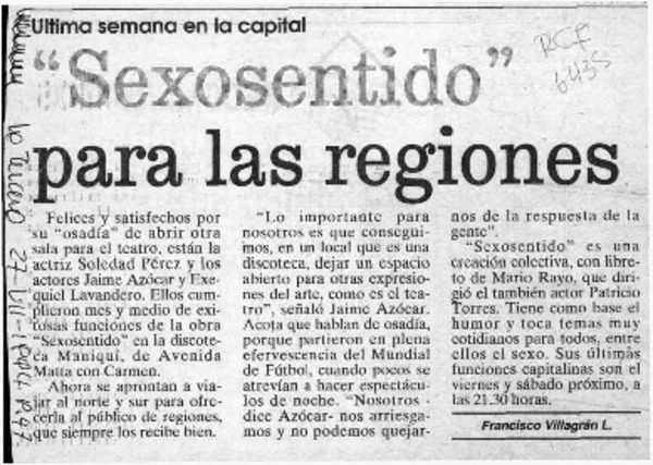 "Sexosentido" para las regiones [artículo] Francisco Villagrán L.